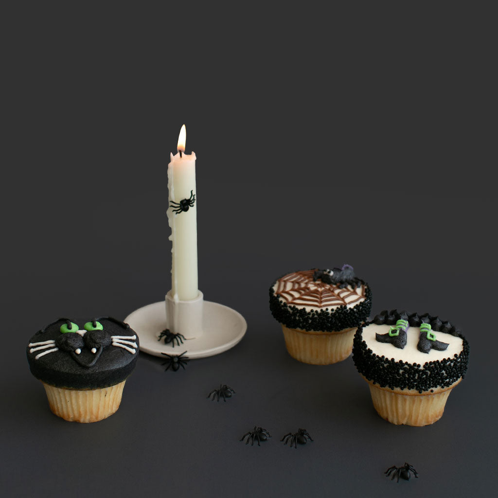 Have a spooktacular celebration with our Halloween specialty cupcakes! Featuring whimsical designs like black cats, witches, and spooky monster eyes, these treats are perfect for any Halloween party. Choose between rich chocolate or classic vanilla cake, each topped with creamy vanilla buttercream.