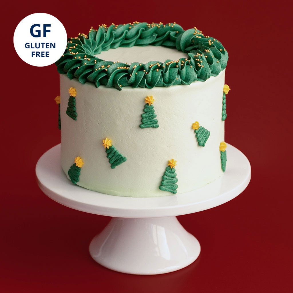 Celebrate the season in style! Our Tree Cake showcases your favorite gluten free cake flavor, adorned with festive trees crafted from creamy vanilla buttercream. Perfect for holiday celebrations, this cake is a delicious centerpiece for any gathering.