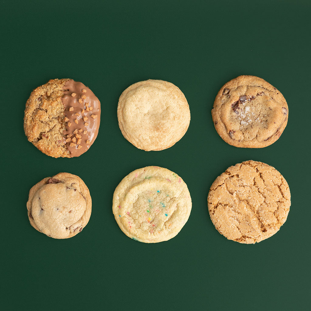 Indulge in a delightful mix of our cookie flavors! Each cookie is handmade and baked fresh to ensure the highest quality and taste. Choose from our baker’s assortment for a variety of flavors, or customize your own selection by purchasing cookies individually.