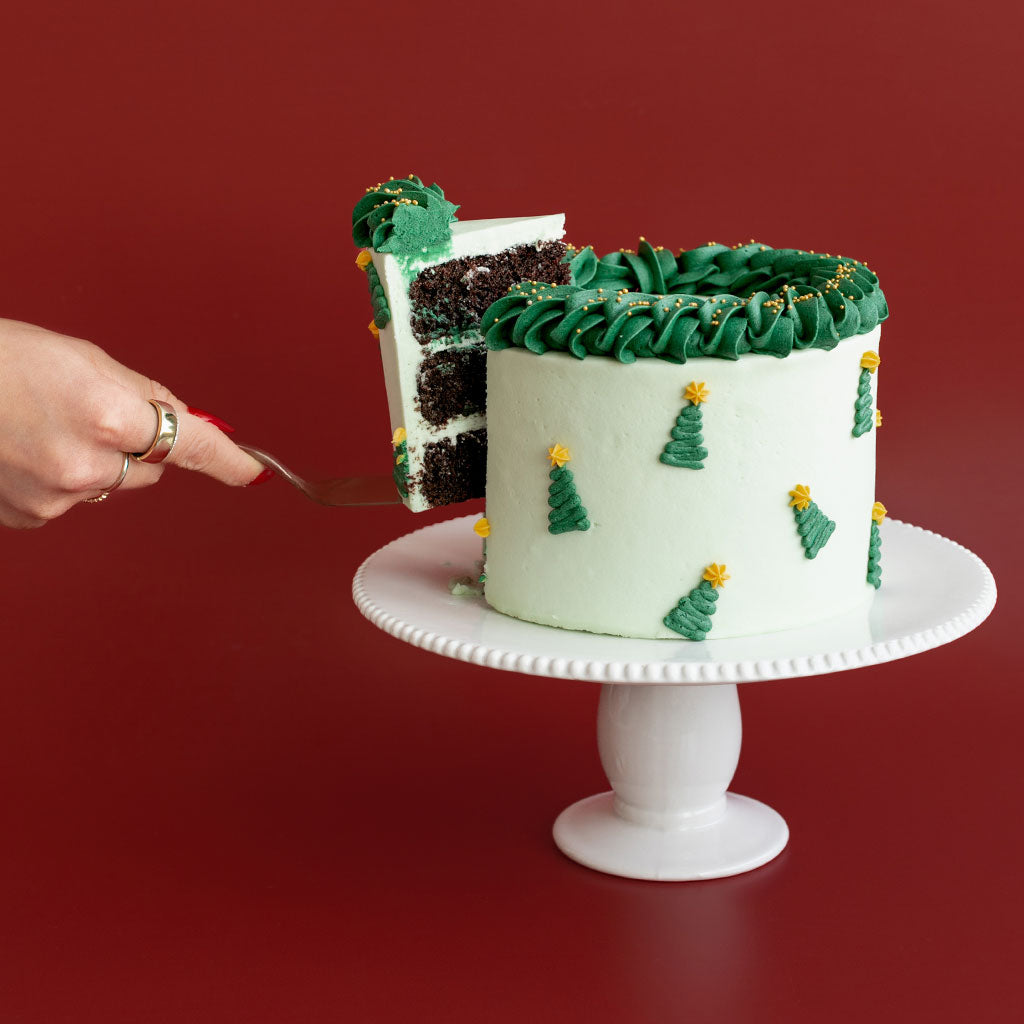 Celebrate the season in style! Our Tree Cake showcases your favorite cake flavor, adorned with festive trees crafted from creamy vanilla buttercream. Perfect for holiday celebrations, this cake is a delicious centerpiece for any gathering.